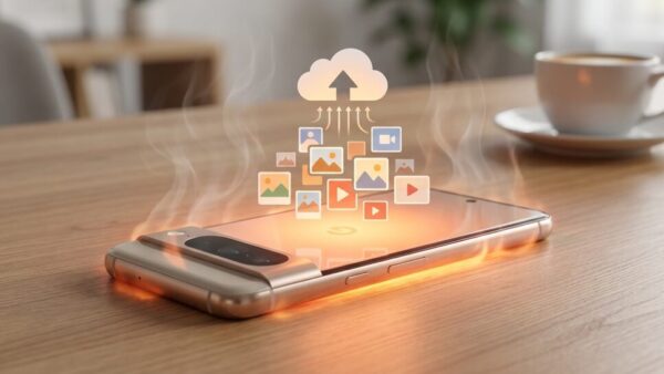 さらにPixel 8特有の要因として、**発熱による性能制御**があります。Google Tensor G3は短時間の処理は得意ですが、同期のように長く続く作業では本体温度が上がりやすいと指摘されています。一定の温度を超えると自動的に処理速度を落とす仕組みが働き、これが操作の鈍さにつながります。Google Pixelの性能評価を行っている海外メディアの検証でも、アップロード中に性能が抑えられる挙動が確認されています。